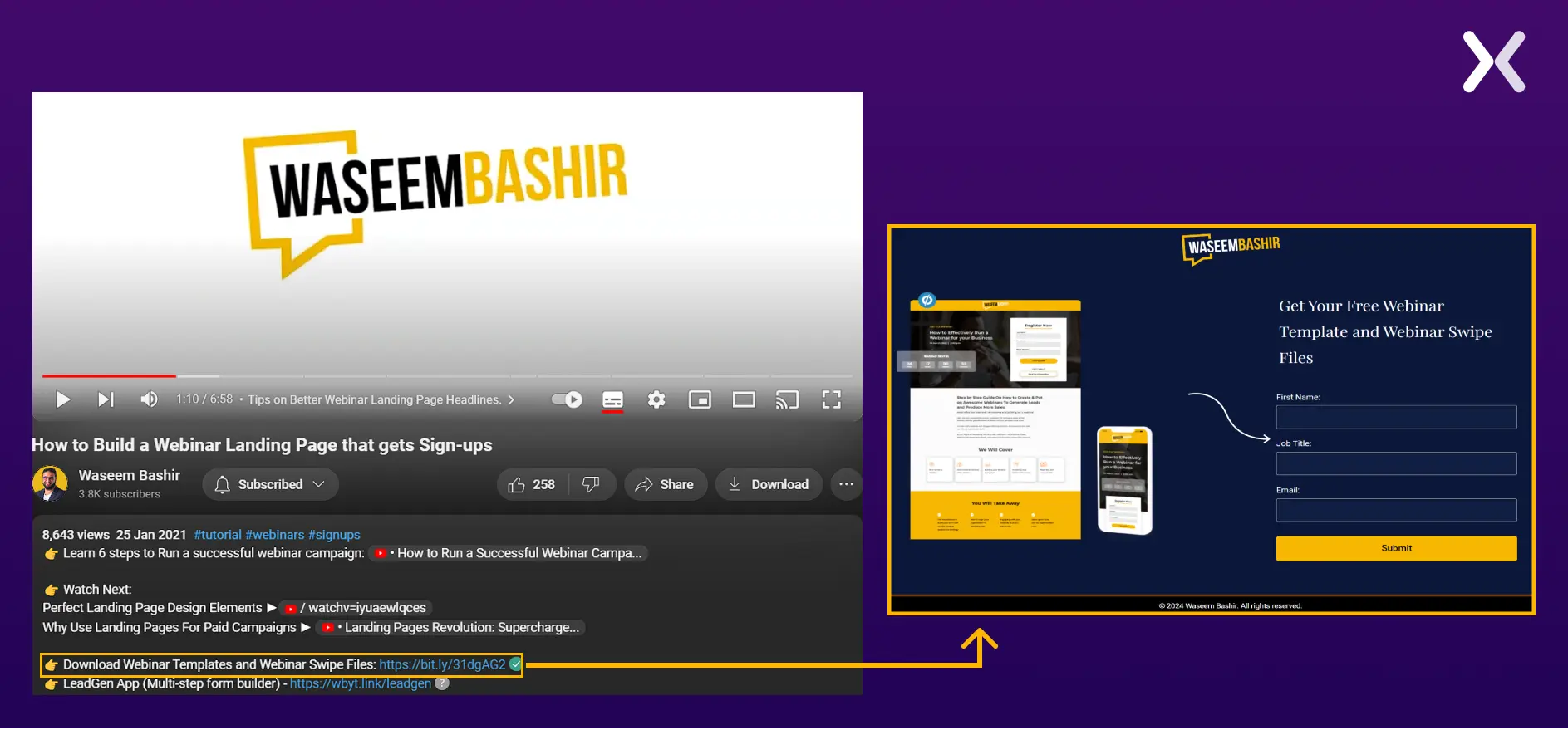 The same funnel method is used in the video below, where viewers are offered a lead magnet that complements their learnings from the video. The link to the lead magnet takes the viewers to a simple squeeze page with a minimal form.