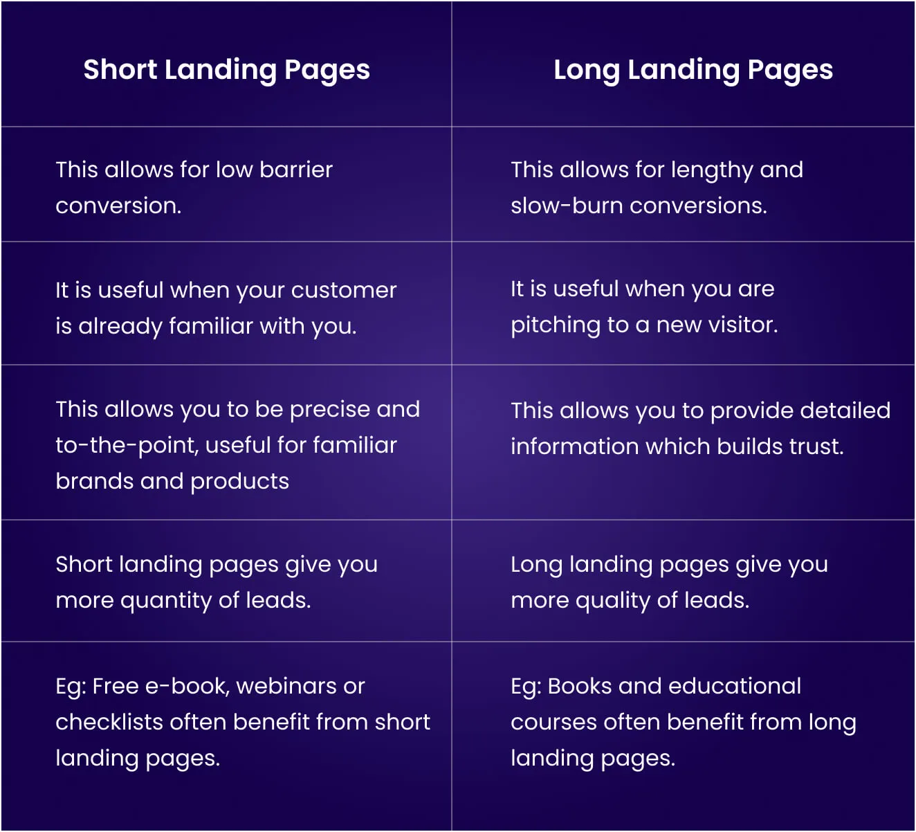 The simple truth is one is not better than the other. Both lengths are valuable, and the key to maximizing their potential is not measuring landing page length but understanding when to use one over the other.