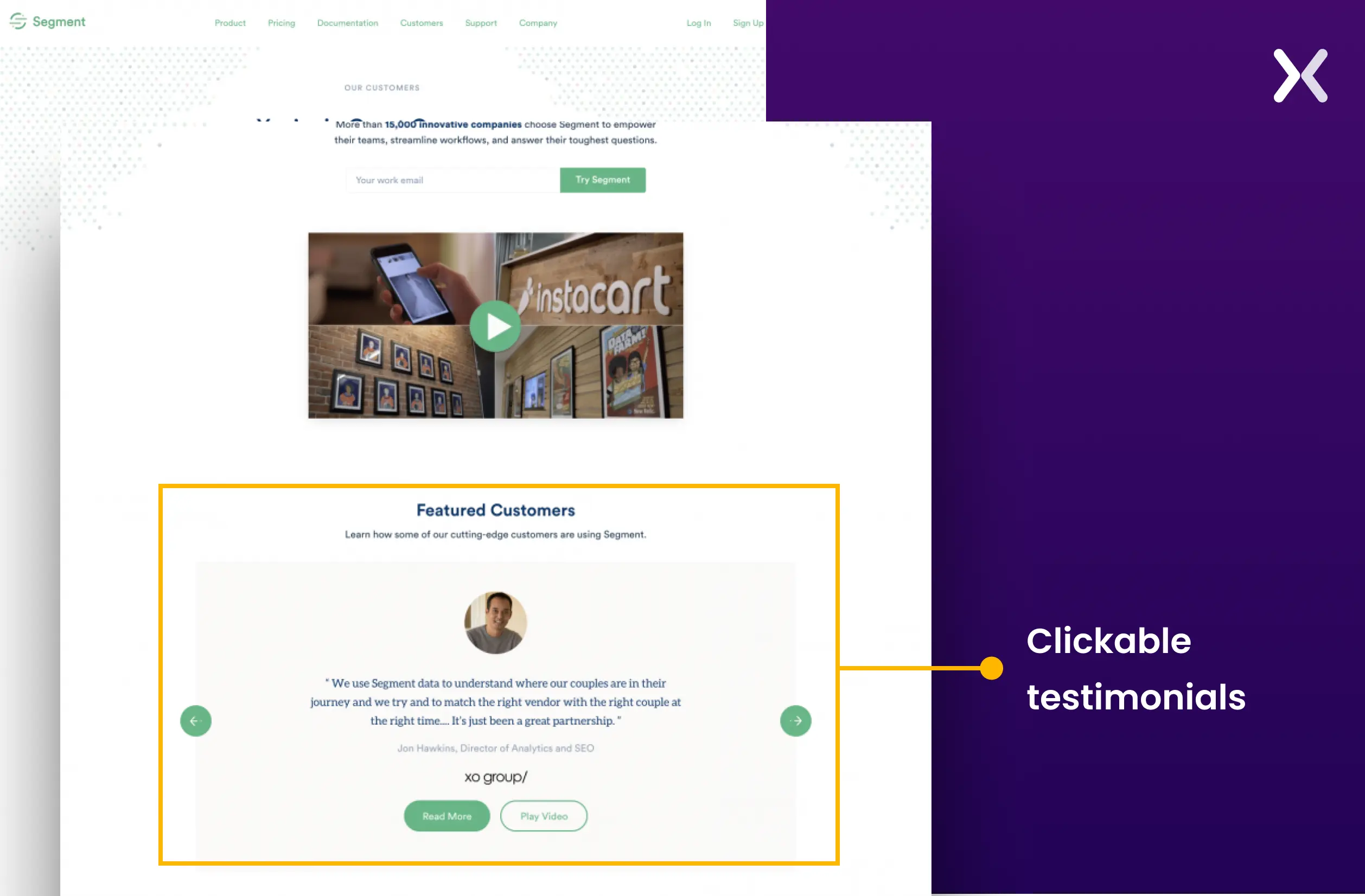 Consider using relevant testimonials for social proof. They could be text, video, or even snippets from Twitter. Just make sure to include them all on your thank you page after form submission. Plus, clickable testimonials allow leads to better understand how you’ve helped other businesses.