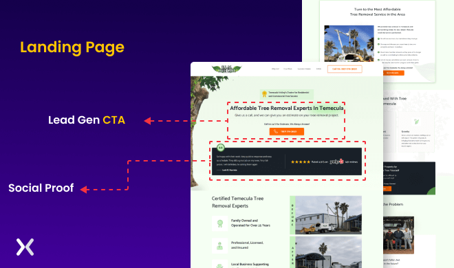 While Apexure’s homepage clearly states who we are, what we do, and why you should choose us and provides numerous links to help you navigate our website; the landing page for E.L.M Tree Care directs you to a free estimate of costs along with some basic information, reviews, and ratings.