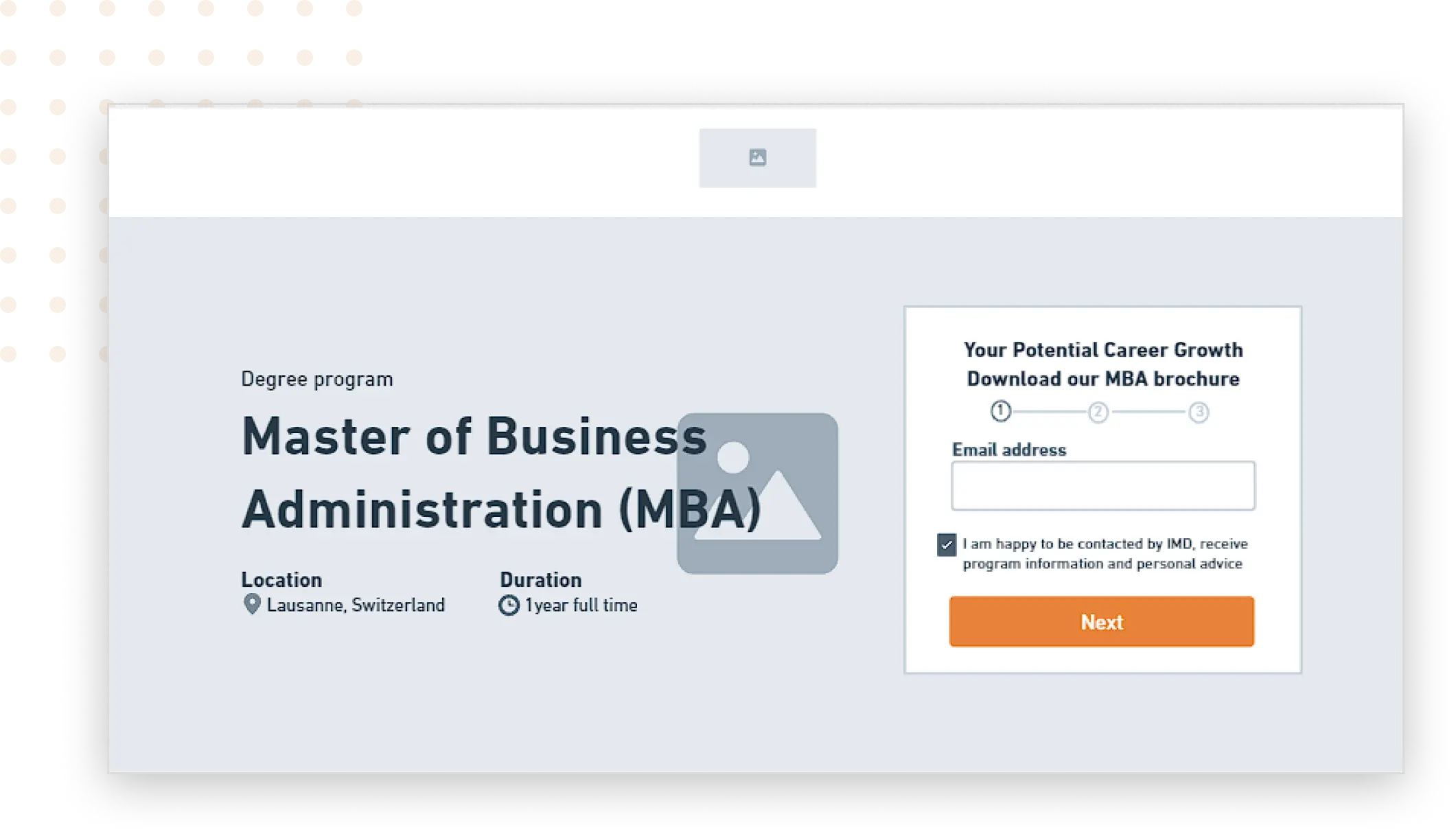 In addition to increasing lead generation, IMD’s landing page had three other key goals: